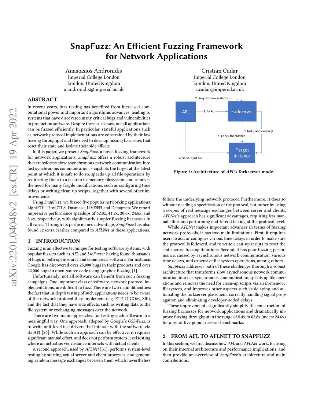 SnapFuzz: An Efficient Fuzzing Framework for Network Applications