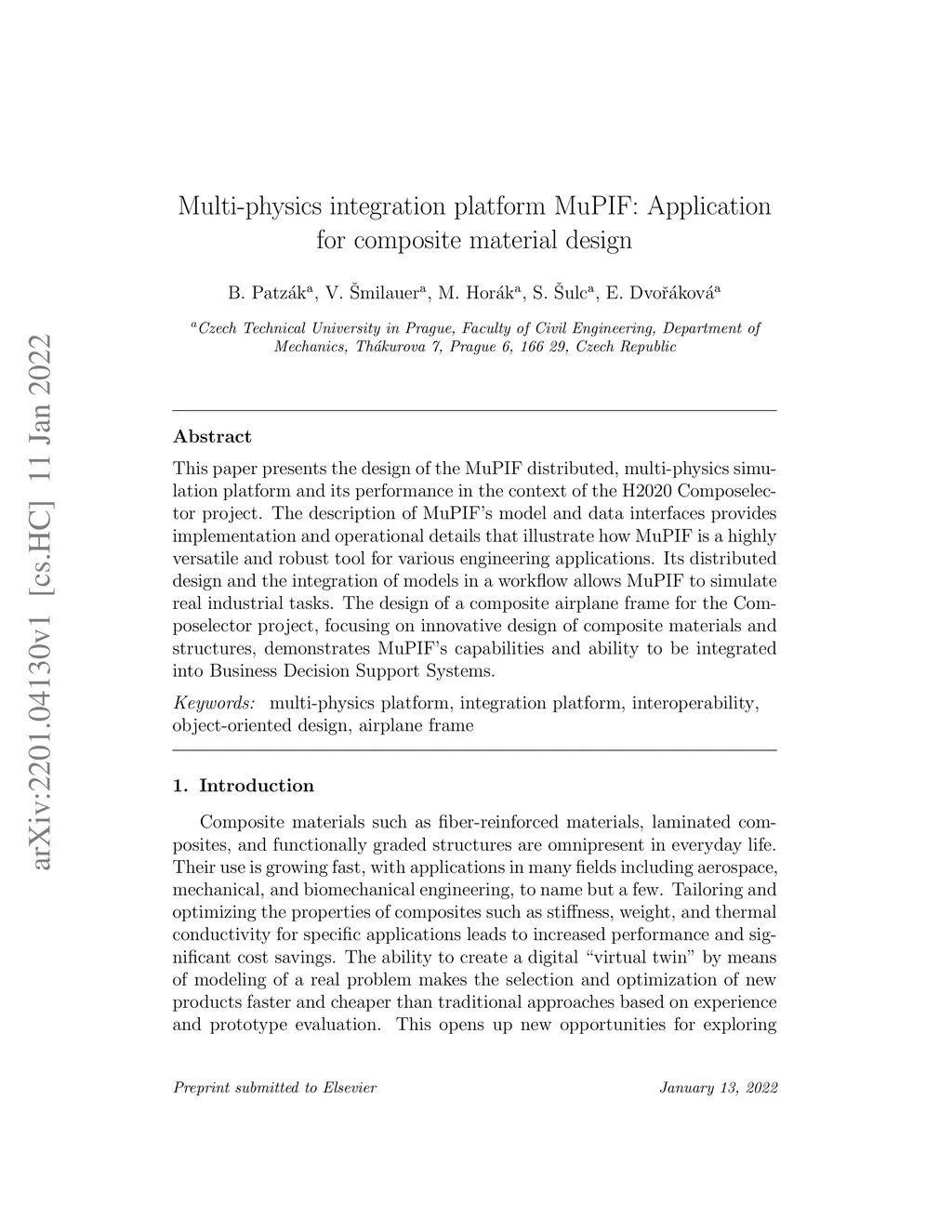 This paper presents the design of the MuPIF distributed, multi-physics simulation platform and its performance in the context of the H2020 Composelector project. The description of MuPIF's model and data interfaces provides implementation and operational details that illustrate how MuPIF is a highly versatile and robust tool for various engineering applications. Its distributed design and the integration of models in a workflow allows MuPIF to simulate real industrial tasks. The design of a composite airplane frame for the Composelector project, focusing on innovative design of composite materials and structures, demonstrates MuPIF's capabilities and ability to be integrated into Business Decision Support Systems.