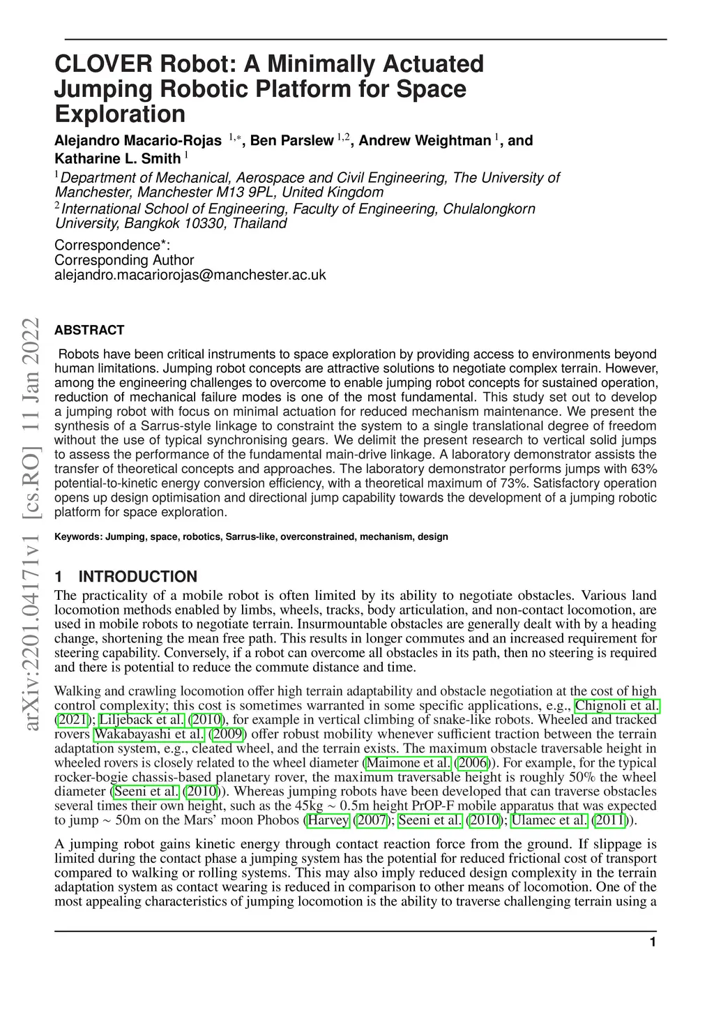 CLOVER Robot: A Minimally Actuated Jumping Robotic Platform for Space