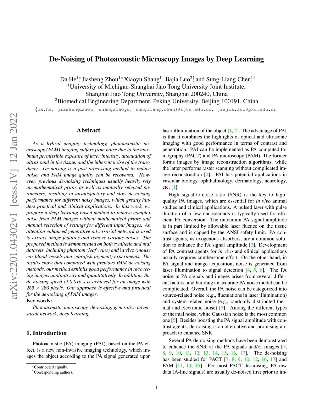 De-Noising of Photoacoustic Microscopy Images by Deep Learning