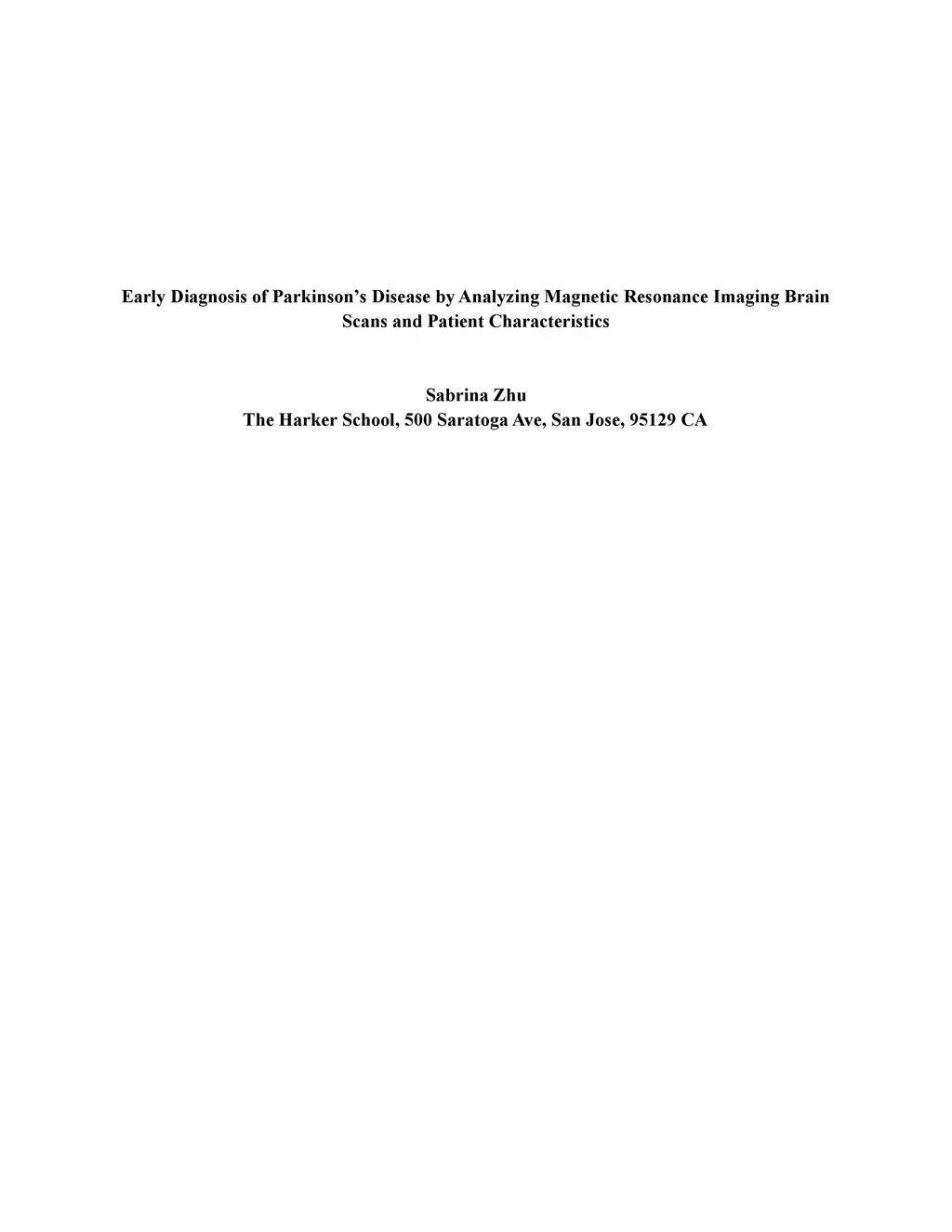 Early Diagnosis of Parkinsons Disease by Analyzing Magnetic Resonance