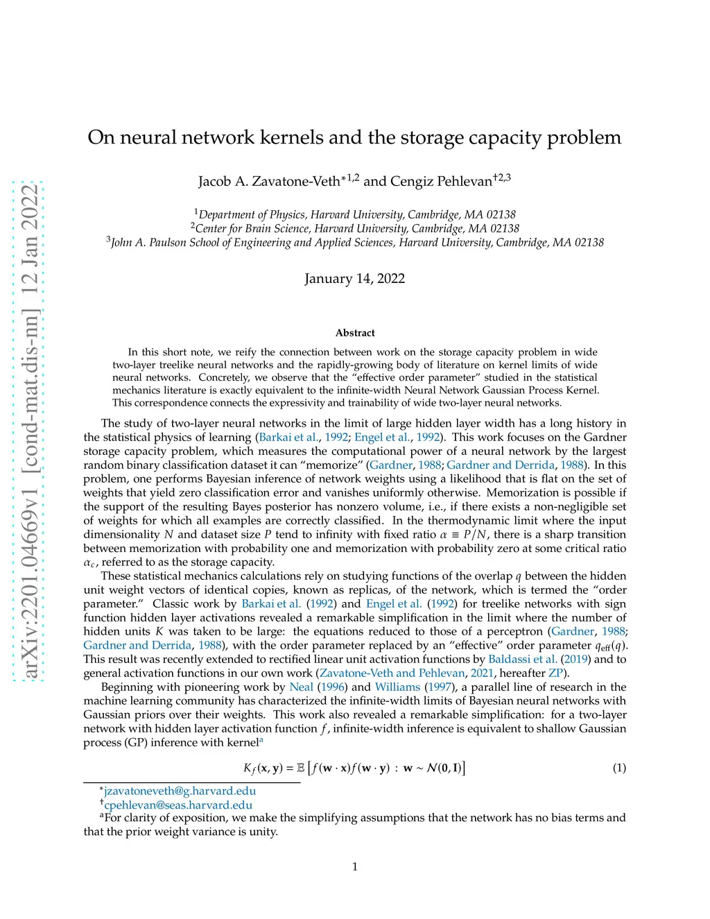 In this short note, we reify the connection between work on the storage capacity problem in wide two-layer treelike neural networks and the rapidly-growing body of literature on kernel limits of wide neural networks. Concretely, we observe that the "effective order parameter" studied in the statistical mechanics literature is exactly equivalent to the infinite-width Neural Network Gaussian Process Kernel. This correspondence connects the expressivity and trainability of wide two-layer neural networks.