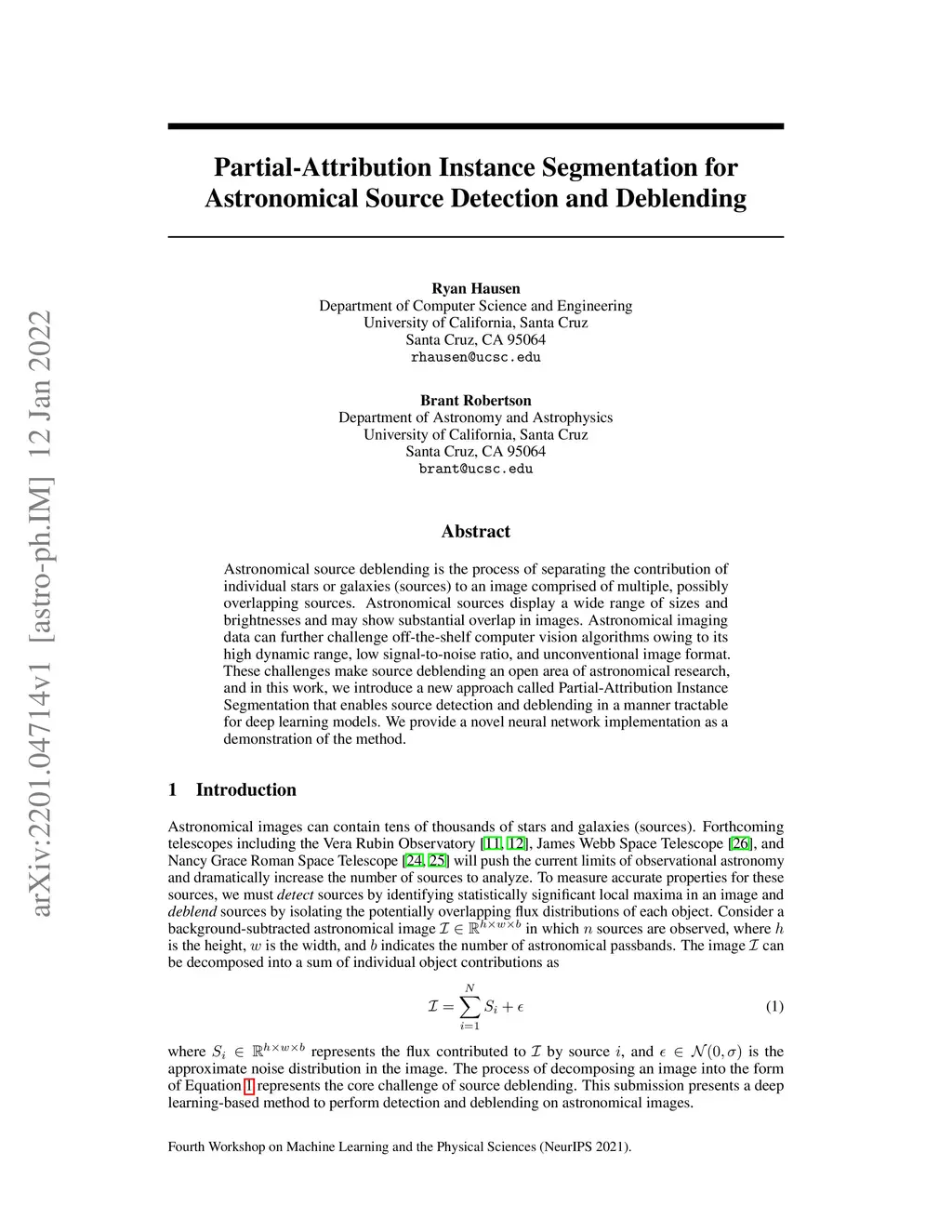 Astronomical source deblending is the process of separating the contribution of individual stars or galaxies (sources) to an image comprised of multiple, possibly overlapping sources. Astronomical sources display a wide range of sizes and brightnesses and may show substantial overlap in images. Astronomical imaging data can further challenge off-the-shelf computer vision algorithms owing to its high dynamic range, low signal-to-noise ratio, and unconventional image format. These challenges make source deblending an open area of astronomical research, and in this work, we introduce a new approach called Partial-Attribution Instance Segmentation that enables source detection and deblending in a manner tractable for deep learning models. We provide a novel neural network implementation as a demonstration of the method.