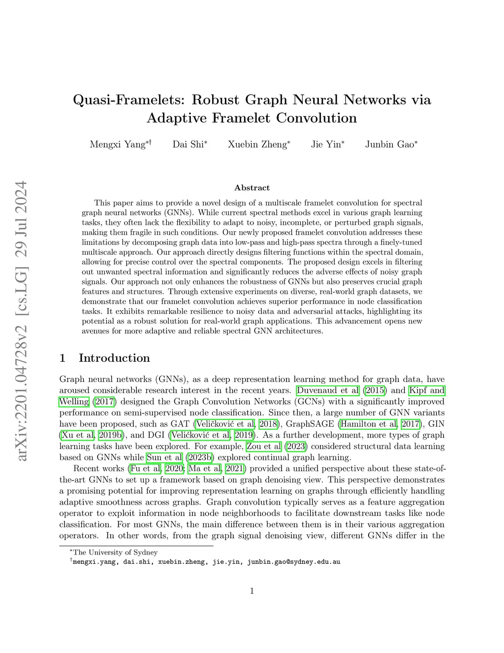 Quasi-Framelets: Another Improvement to GraphNeural Networks