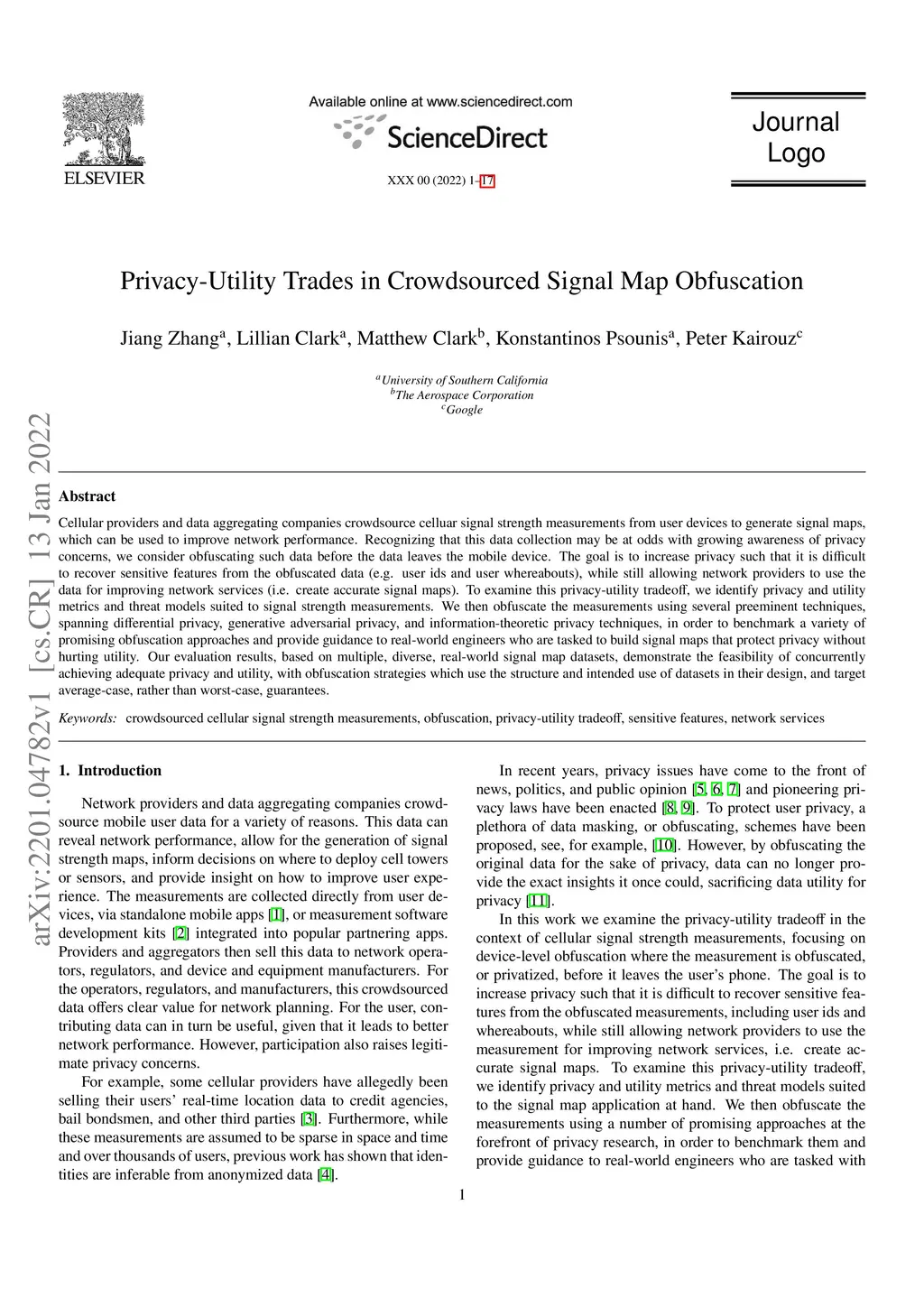 Cellular providers and data aggregating companies crowdsource celluar signal strength measurements from user devices to generate signal maps, which can be used to improve network performance. Recognizing that this data collection may be at odds with growing awareness of privacy concerns, we consider obfuscating such data before the data leaves the mobile device. The goal is to increase privacy such that it is difficult to recover sensitive features from the obfuscated data (e.g. user ids and user whereabouts), while still allowing network providers to use the data for improving network services (i.e. create accurate signal maps). To examine this privacy-utility tradeoff, we identify privacy and utility metrics and threat models suited to signal strength measurements. We then obfuscate the measurements using several preeminent techniques, spanning differential privacy, generative adversarial privacy, and information-theoretic privacy techniques, in order to benchmark a variety of promising obfuscation approaches and provide guidance to real-world engineers who are tasked to build signal maps that protect privacy without hurting utility. Our evaluation results, based on multiple, diverse, real-world signal map datasets, demonstrate the feasibility of concurrently achieving adequate privacy and utility, with obfuscation strategies which use the structure and intended use of datasets in their design, and target average-case, rather than worst-case, guarantees.