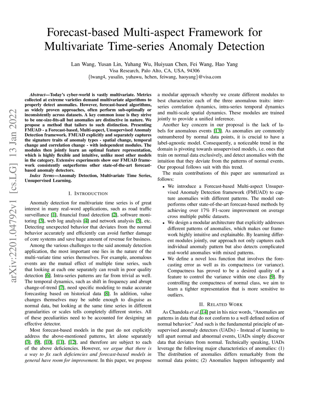 Today's cyber-world is vastly multivariate. Metrics collected at extreme varieties demand multivariate algorithms to properly detect anomalies. However, forecast-based algorithms, as widely proven approaches, often perform sub-optimally or inconsistently across datasets. A key common issue is they strive to be one-size-fits-all but anomalies are distinctive in nature. We propose a method that tailors to such distinction. Presenting FMUAD - a Forecast-based, Multi-aspect, Unsupervised Anomaly Detection framework. FMUAD explicitly and separately captures the signature traits of anomaly types - spatial change, temporal change and correlation change - with independent modules. The modules then jointly learn an optimal feature representation, which is highly flexible and intuitive, unlike most other models in the category. Extensive experiments show our FMUAD framework consistently outperforms other state-of-the-art forecast-based anomaly detectors.