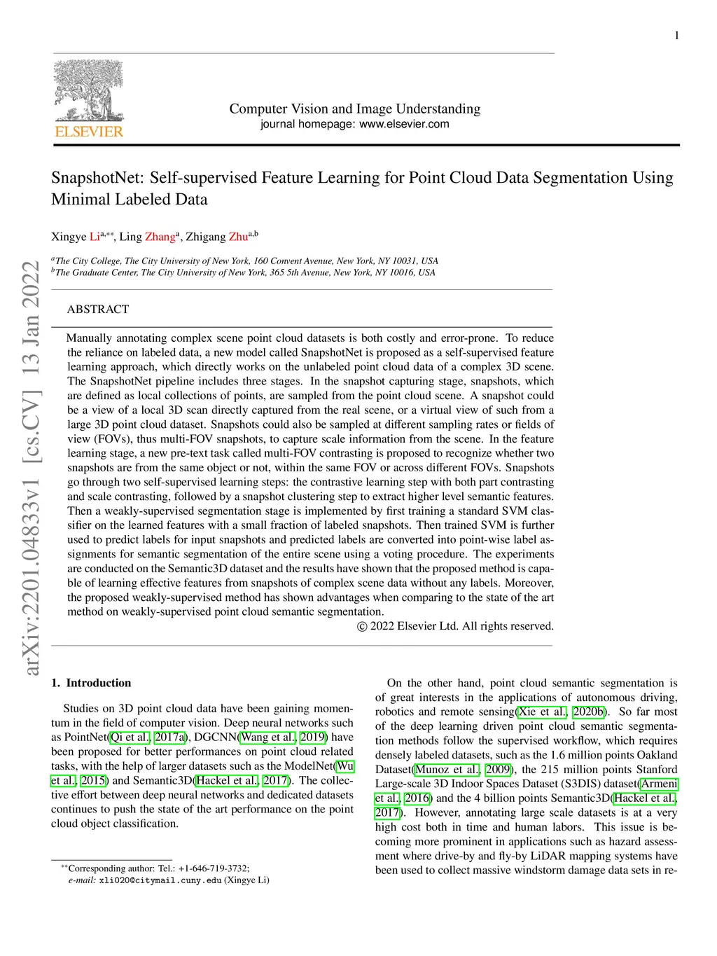 SnapshotNet: Self-supervised Feature Learning for Point Cloud Data