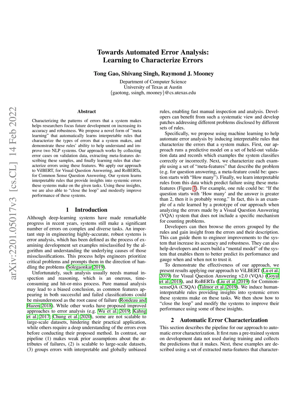 Towards Automated Error Analysis: Learning to Characterize Errors