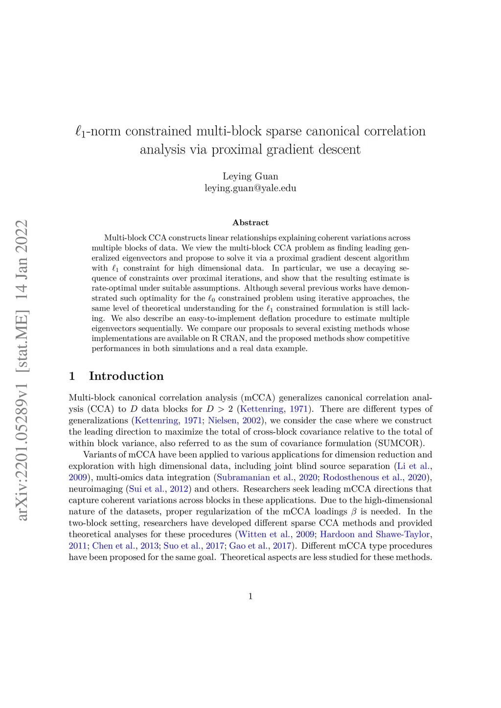 Multi-block CCA constructs linear relationships explaining coherent variations across multiple blocks of data. We view the multi-block CCA problem as finding leading generalized eigenvectors and propose to solve it via a proximal gradient descent algorithm with constraint for high dimensional data. In particular, we use a decaying sequence of constraints over proximal iterations, and show that the resulting estimate is rate-optimal under suitable assumptions. Although several previous works have demonstrated such optimality for the constrained problem using iterative approaches, the same level of theoretical understanding for the constrained formulation is still lacking. We also describe an easy-to-implement deflation procedure to estimate multiple eigenvectors sequentially. We compare our proposals to several existing methods whose implementations are available on R CRAN, and the proposed methods show competitive performances in both simulations and a real data example.