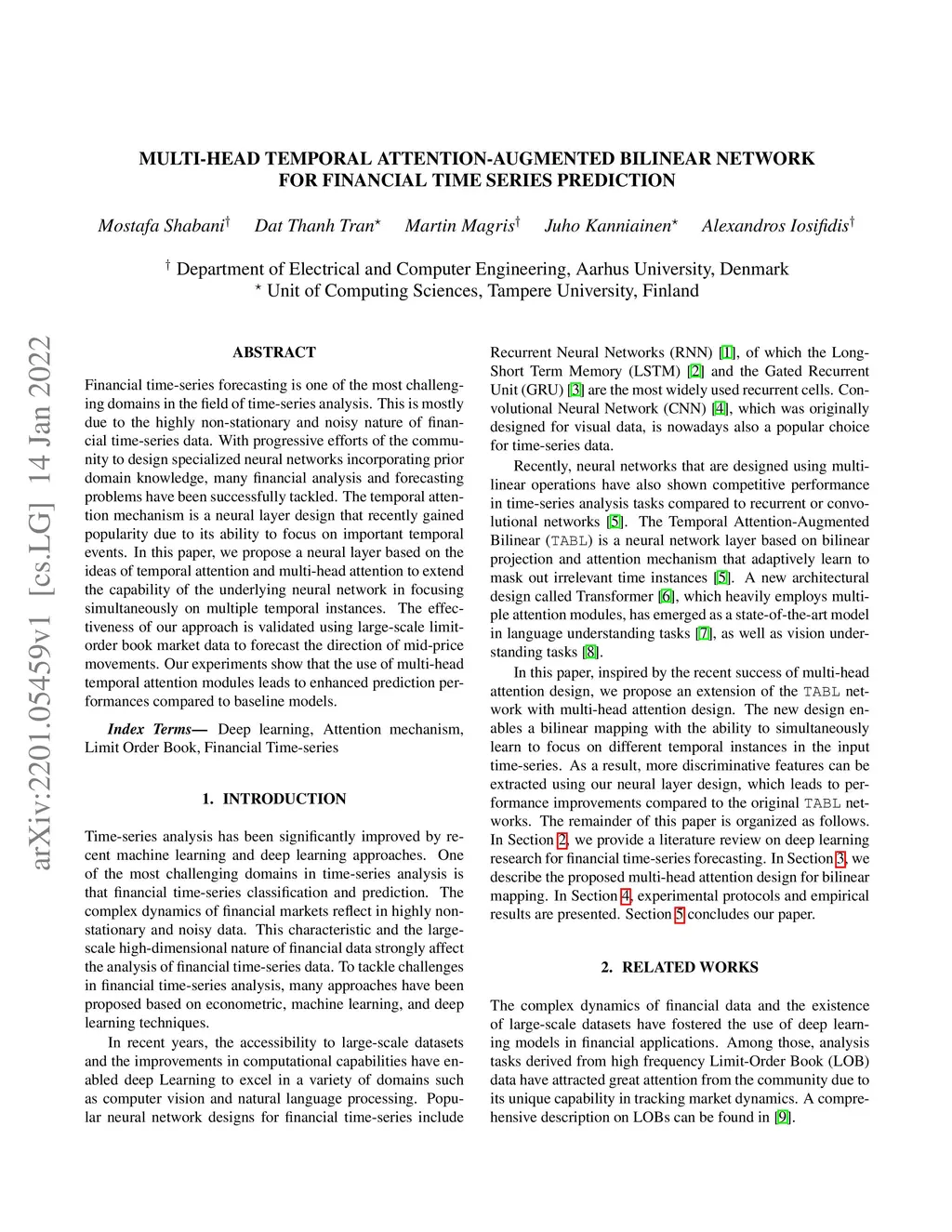 Multi-head Temporal Attention-Augmented Bilinear Network for Financial
