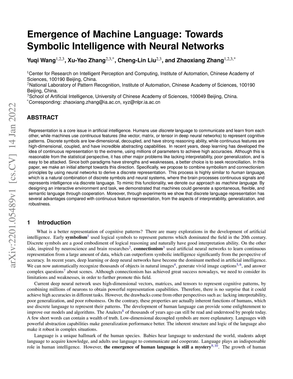 Emergence of Machine Language: Towards Symbolic Intelligence with Neural