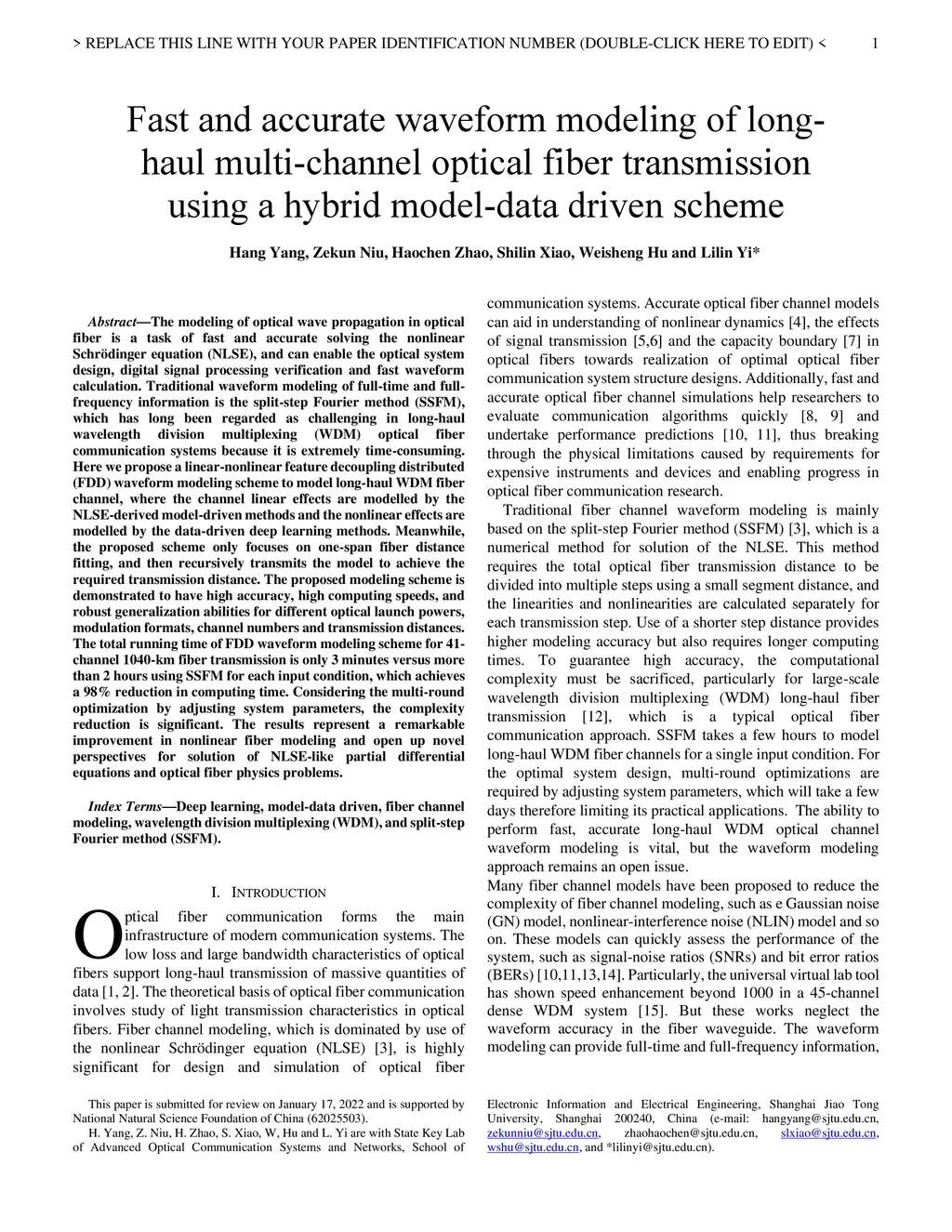 fiber transmission using a hybrid model-data driven scheme