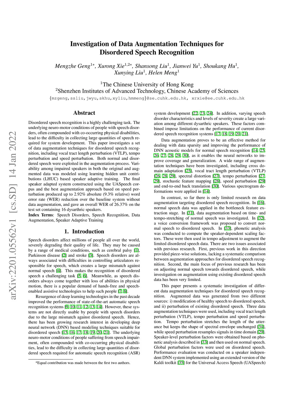 Investigation of Data Augmentation Techniques for Disordered Speech