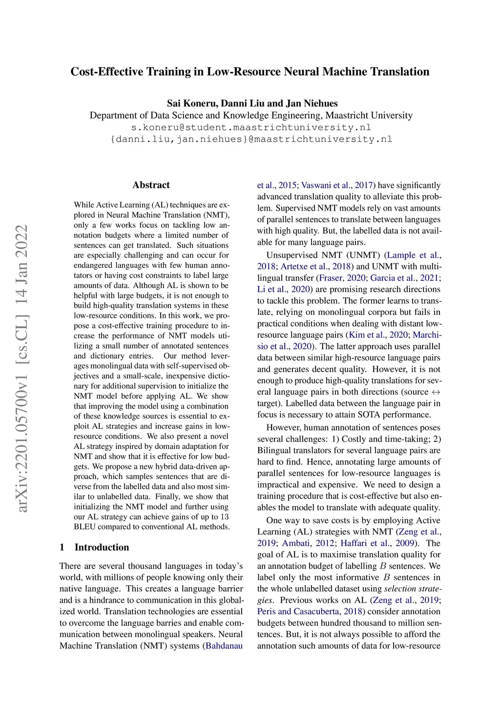 Cost-Effective Training in Low-Resource Neural Machine Translation
