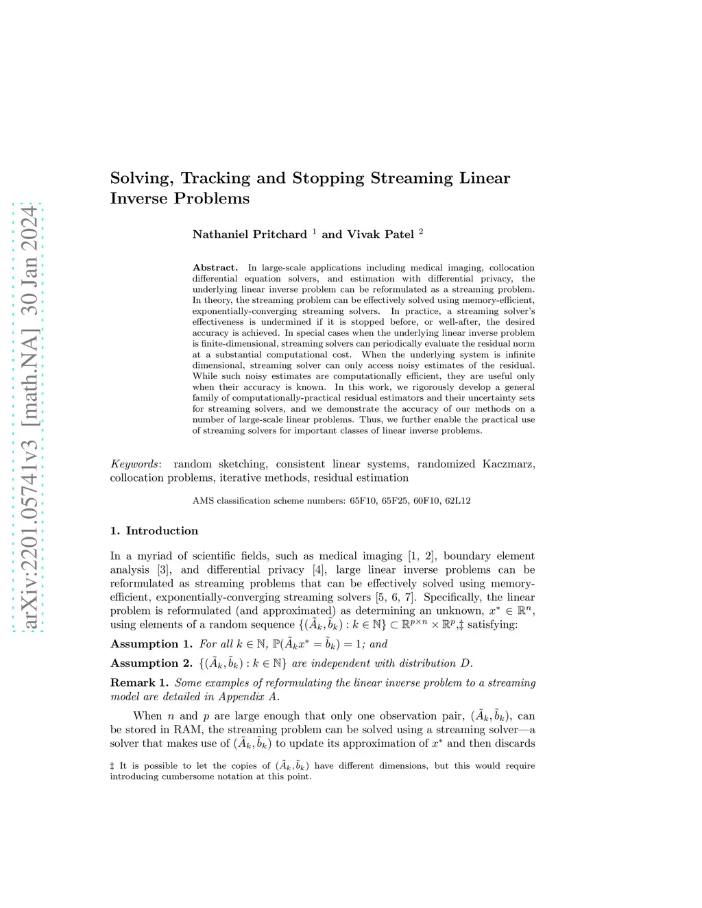Solving, Tracking and Stopping Streaming Linear Inverse Problems