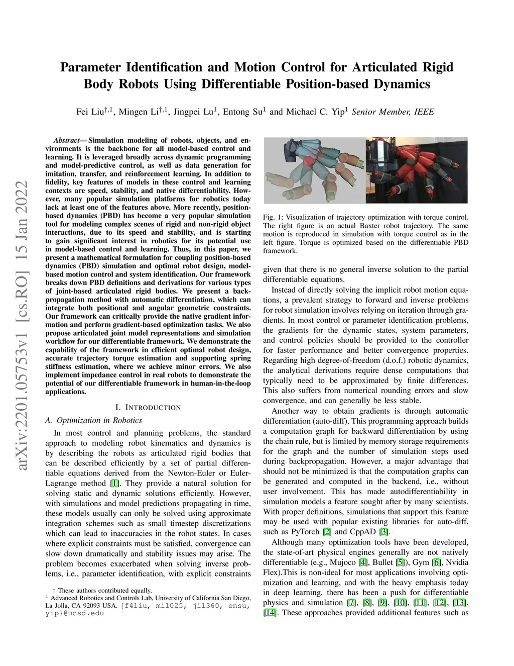Parameter Identification and Motion Control for Articulated Rigid Body