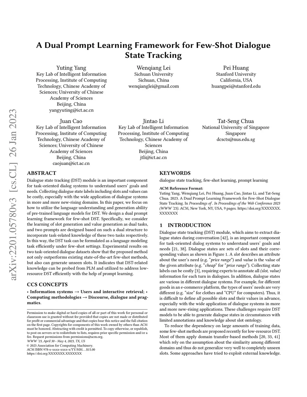 A Dual Prompt Learning Framework for Few-Shot Dialogue State Tracking