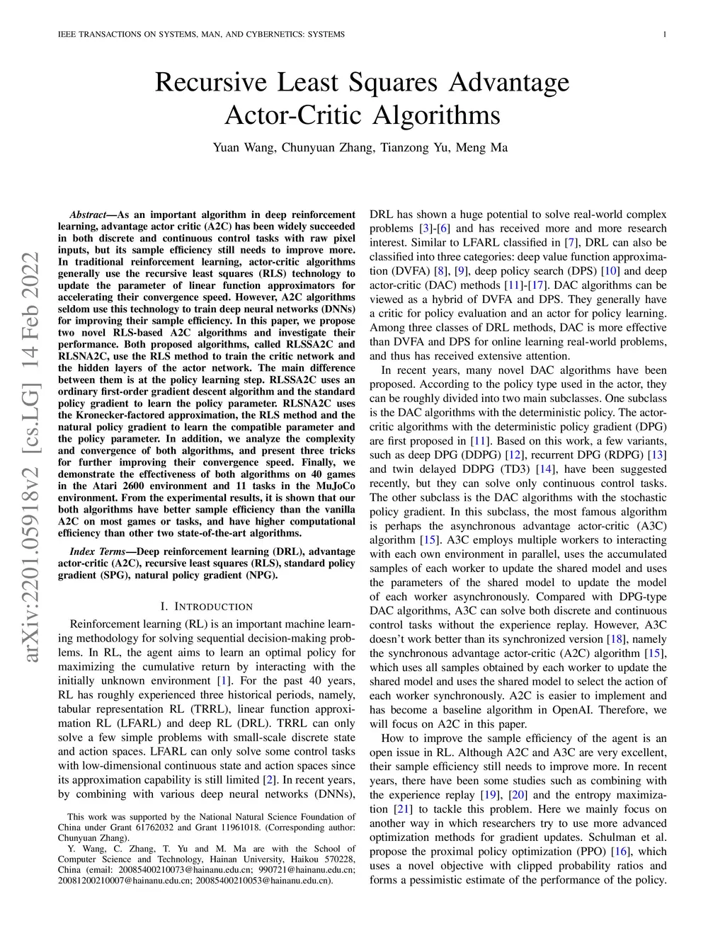 Recursive Least Squares Advantage Actor-Critic Algorithms