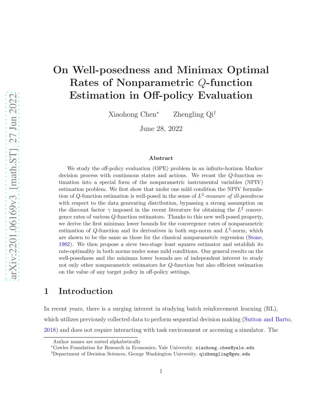 On Well-posedness and Minimax Optimal Rates of Nonparametric Q-function