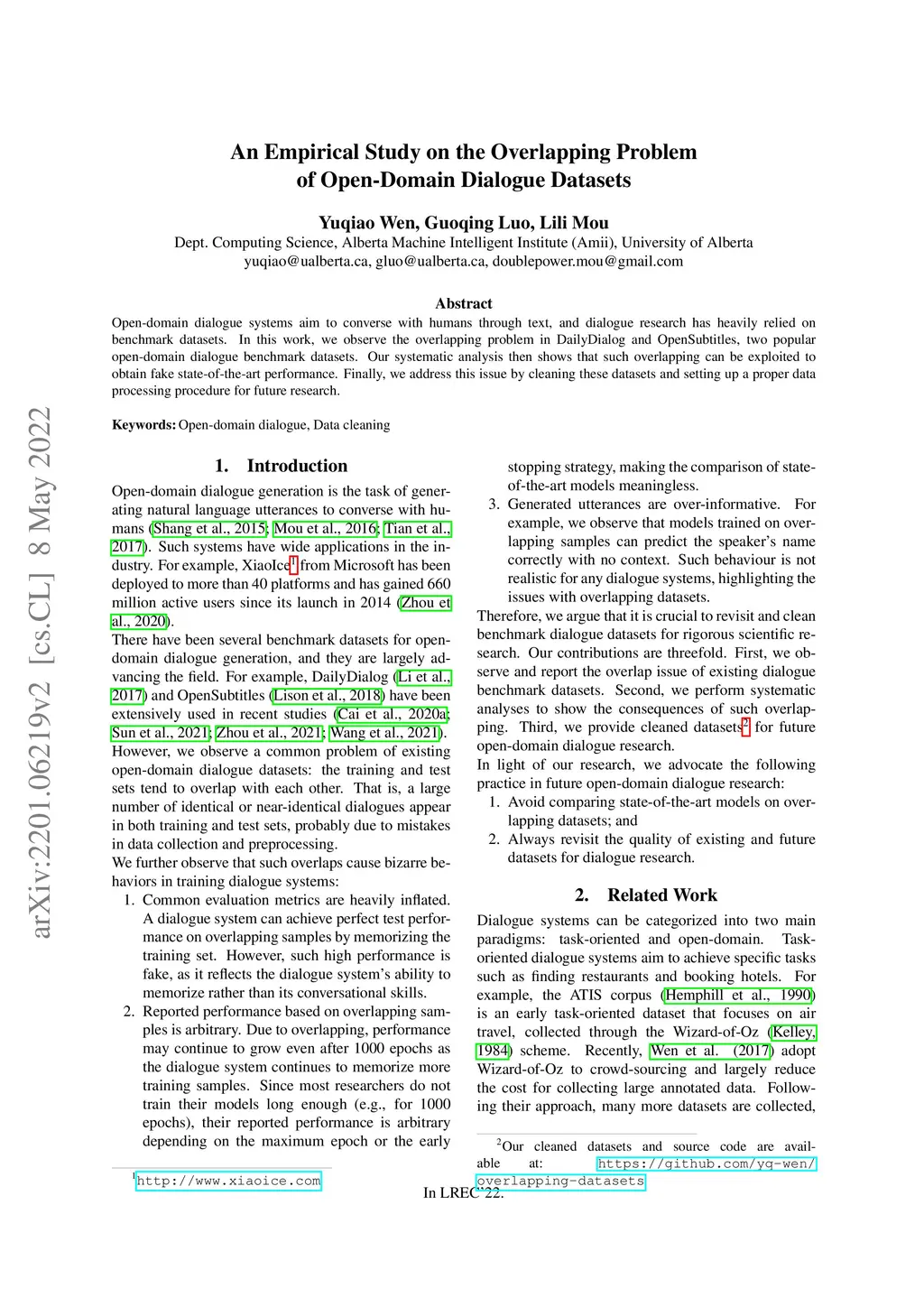 An Empirical Study on the Overlapping Problem of Open-Domain Dialogue