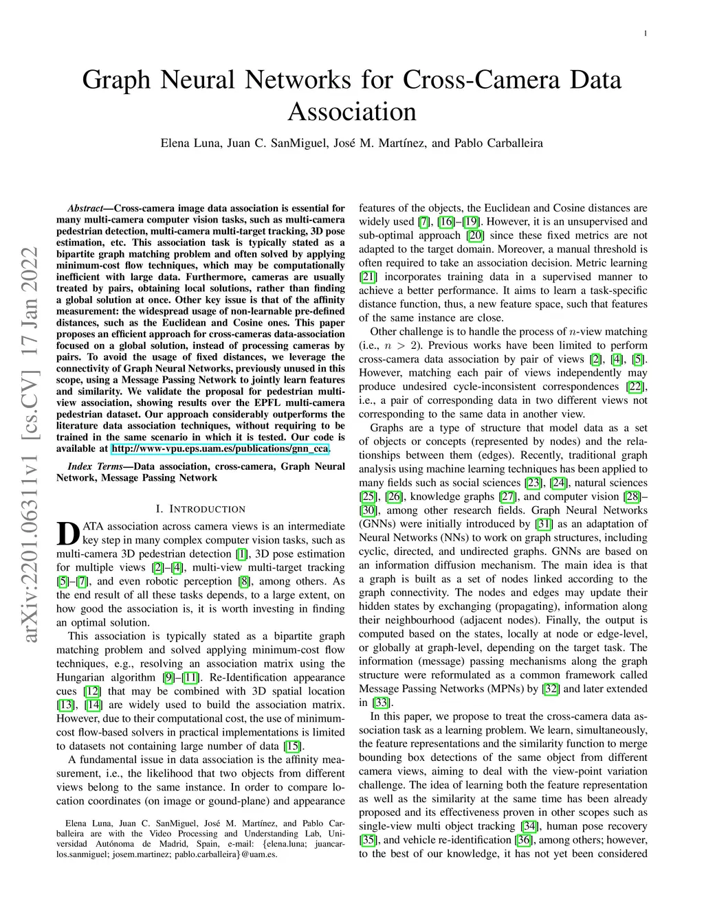 Graph Neural Networks for Cross-Camera Data Association