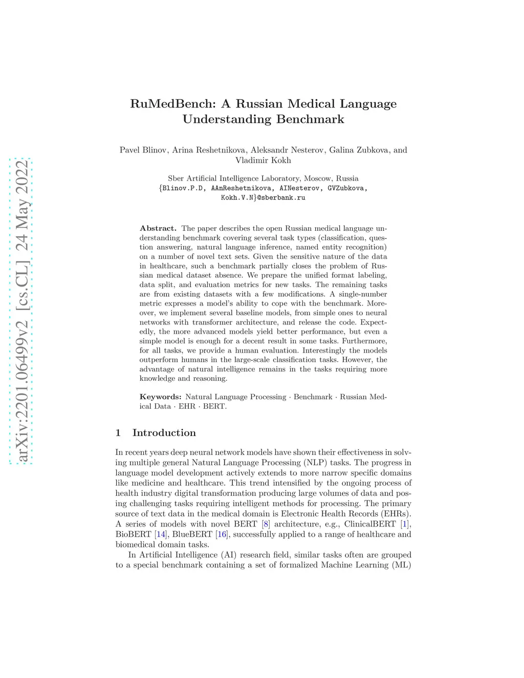 RuMedBench: A Russian Medical Language Understanding Benchmark