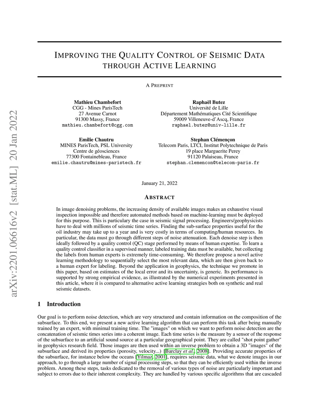 In image denoising problems, the increasing density of available images makes an exhaustive visual inspection impossible and therefore automated methods based on machine-learning must be deployed for this purpose. This is particulary the case in seismic signal processing. Engineers/geophysicists have to deal with millions of seismic time series. Finding the sub-surface properties useful for the oil industry may take up to a year and is very costly in terms of computing/human resources. In particular, the data must go through different steps of noise attenuation. Each denoise step is then ideally followed by a quality control (QC) stage performed by means of human expertise. To learn a quality control classifier in a supervised manner, labeled training data must be available, but collecting the labels from human experts is extremely time-consuming. We therefore propose a novel active learning methodology to sequentially select the most relevant data, which are then given back to a human expert for labeling. Beyond the application in geophysics, the technique we promote in this paper, based on estimates of the local error and its uncertainty, is generic. Its performance is supported by strong empirical evidence, as illustrated by the numerical experiments presented in this article, where it is compared to alternative active learning strategies both on synthetic and real seismic datasets.