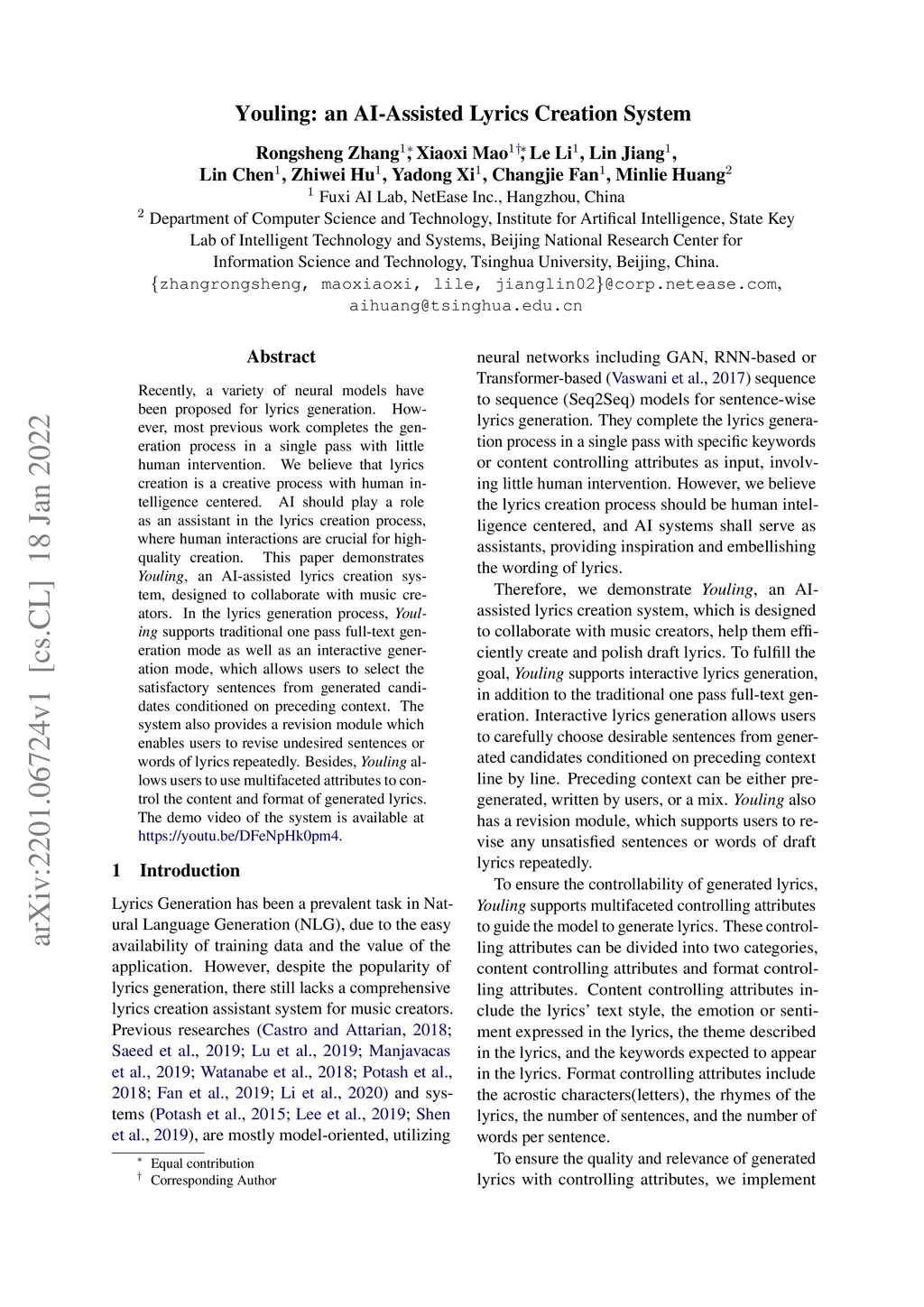 Youling: an AI-Assisted Lyrics Creation System
