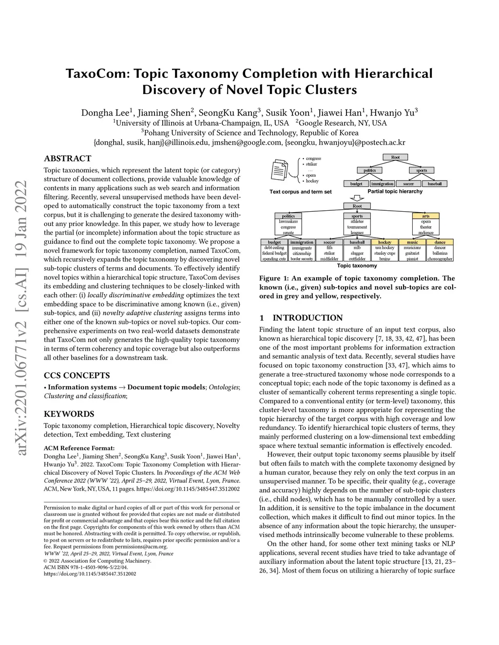 TaxoCom: Topic Taxonomy Completion with Hierarchical Discovery of Novel