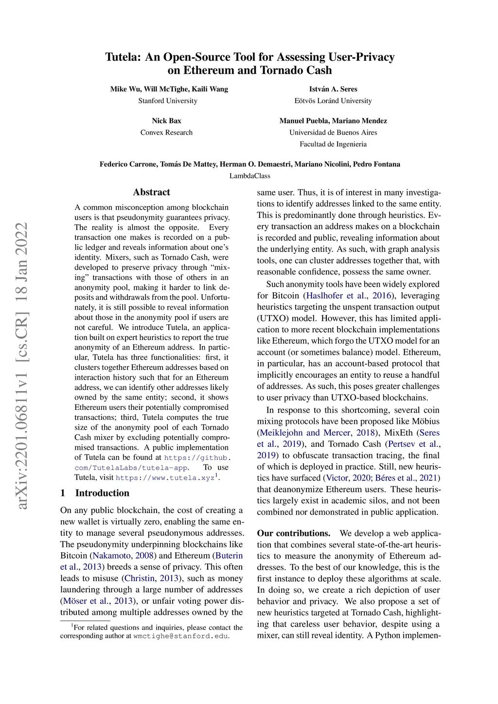 Tutela: An Open-Source Tool for Assessing User-Privacy on Ethereum and