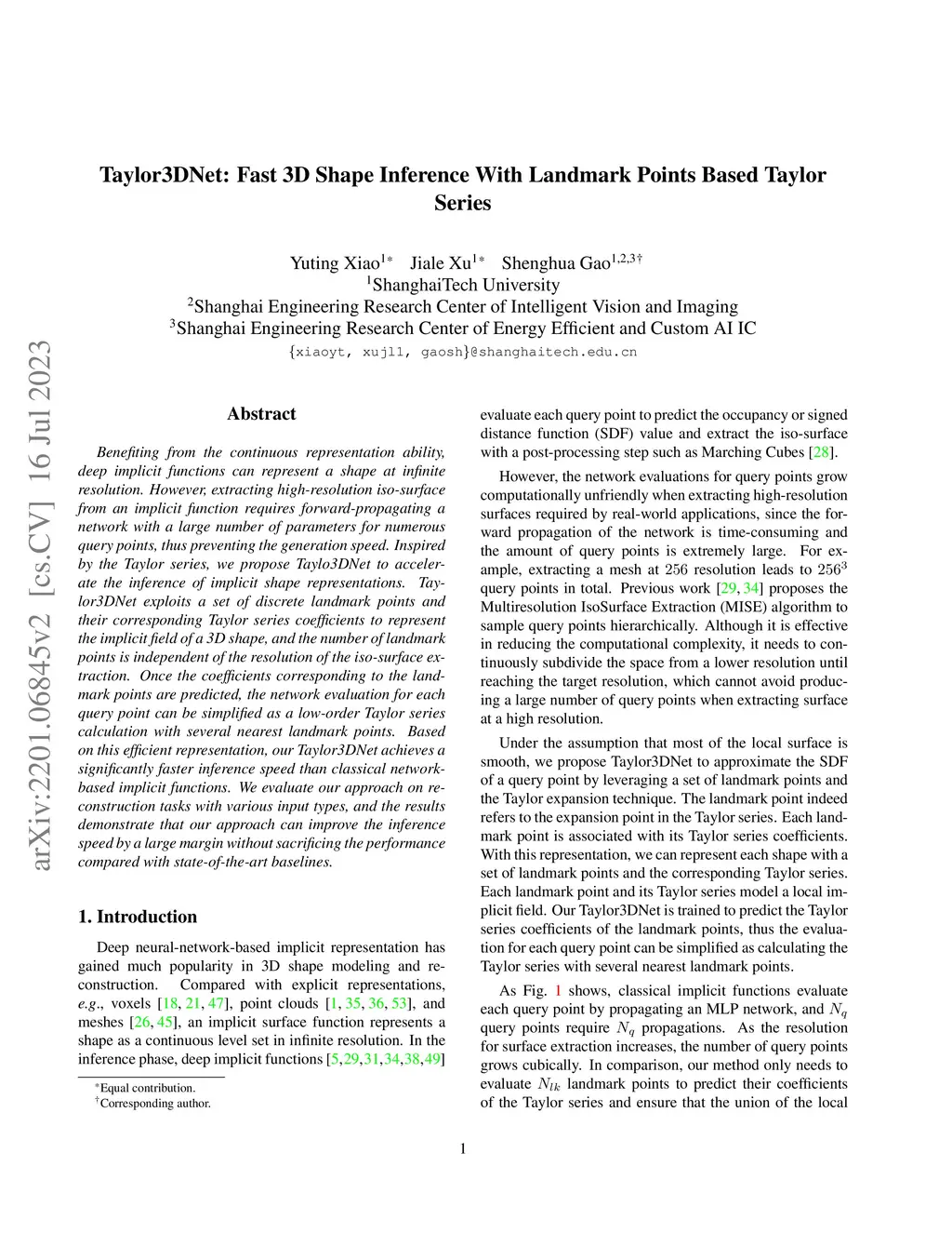 Taylor3DNet: Fast 3D Shape Inference With Landmark Points Based Taylor