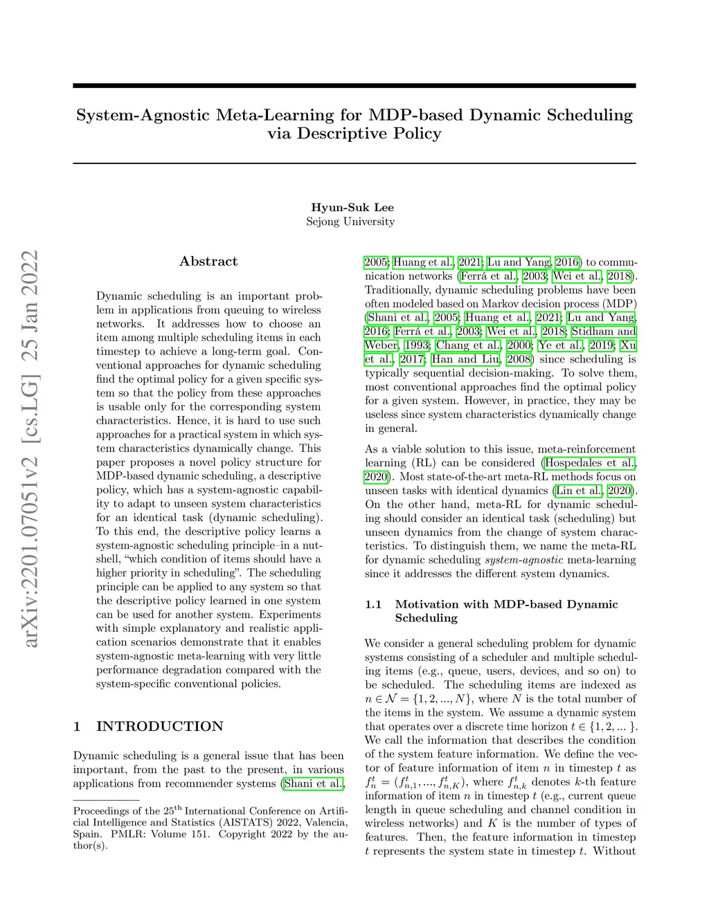 System-Agnostic Meta-Learning for MDP-based Dynamic Scheduling via