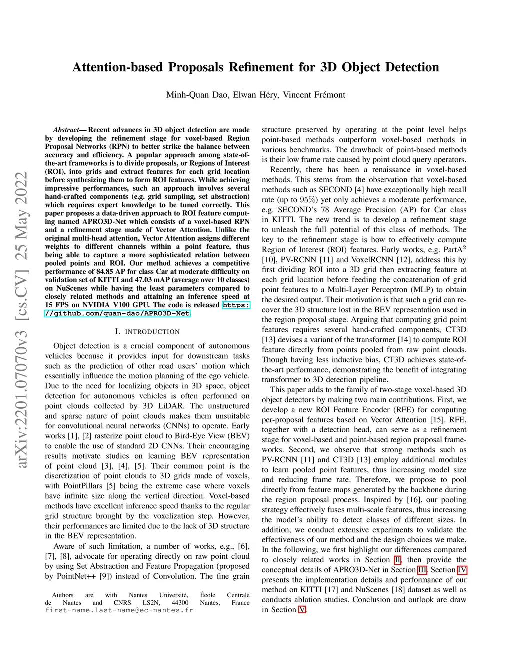 Recent advances in 3D object detection is made by developing the refinement stage for voxel-based Region Proposal Networks (RPN) to better strike the balance between accuracy and efficiency. A popular approach among state-of-the-art frameworks is to divide proposals, or Regions of Interest (ROI), into grids and extract feature for each grid location before synthesizing them to form ROI feature. While achieving impressive performances, such an approach involves a number of hand crafted components (e.g. grid sampling, set abstraction) which requires expert knowledge to be tuned correctly. This paper proposes a data-driven approach to ROI feature computing named APRO3D-Net which consists of a voxel-based RPN and a refinement stage made of Vector Attention. Unlike the original multi-head attention, Vector Attention assigns different weights to different channels within a point feature, thus being able to capture a more sophisticated relation between pooled points and ROI. Experiments on KITTI \textit{validation} set show that our method achieves competitive performance of 84.84 AP for class Car at Moderate difficulty while having the least parameters compared to closely related methods and attaining a quasi-real time inference speed at 15 FPS on NVIDIA V100 GPU. The code is released in https://github.com/quan-dao/APRO3D-Net.
