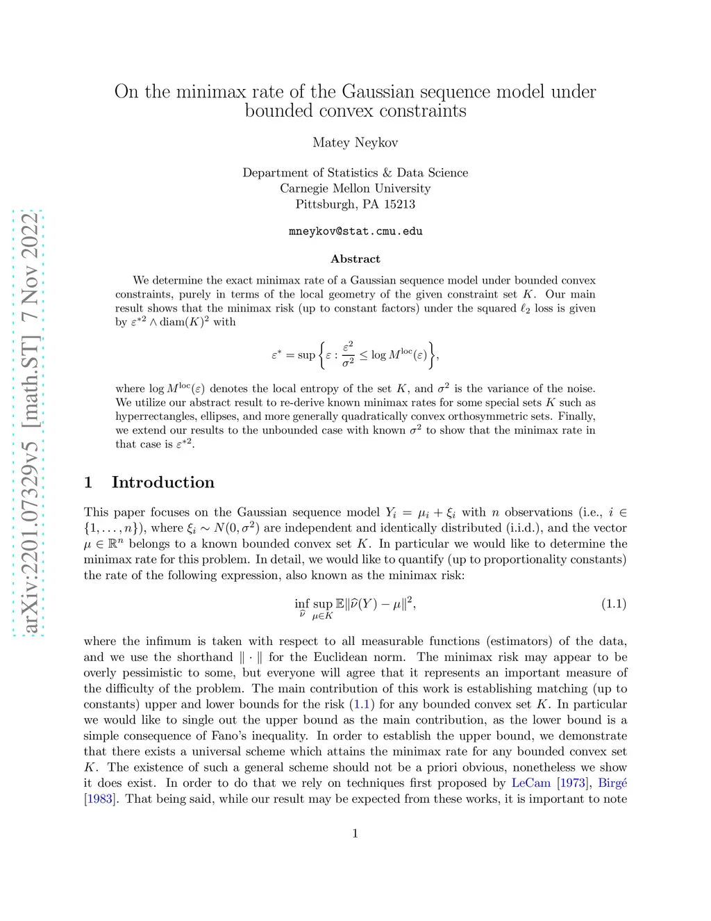 We determine the exact minimax rate of a Gaussian sequence model under bounded convex constraints, purely in terms of the local geometry of the given constraint set . Our main result shows that the minimax risk (up to constant factors) under the squared loss is given by with \begin{align*} \epsilon^* = \sup \bigg\{\epsilon : \frac{\epsilon^2}{\sigma^2} \leq \log M^{\operatorname{loc}}(\epsilon)\bigg\}, \end{align*} where denotes the local entropy of the set , and is the variance of the noise. We utilize our abstract result to re-derive known minimax rates for some special sets such as hyperrectangles, ellipses, and more generally quadratically convex orthosymmetric sets. Finally, we extend our results to the unbounded case with known to show that the minimax rate in that case is .