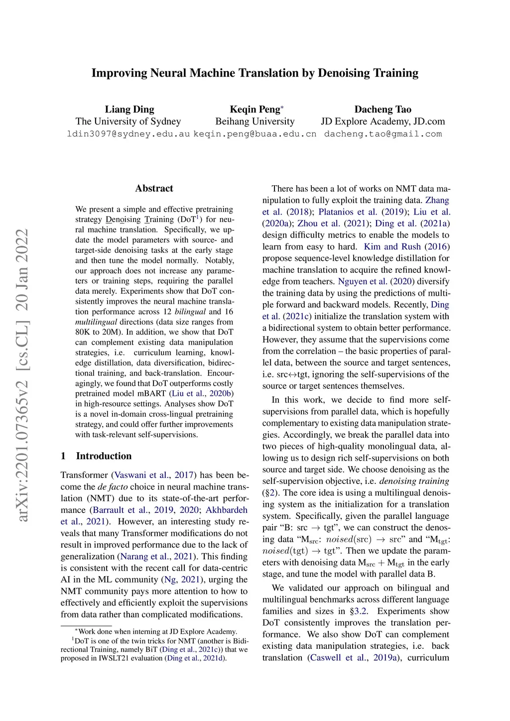 Improving Neural Machine Translation by Denoising Training