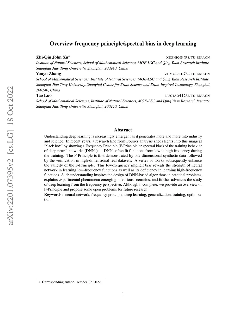 Understanding deep learning is increasingly emergent as it penetrates more and more into industry and science. In recent years, a research line from Fourier analysis sheds lights into this magical "black box" by showing a Frequency Principle (F-Principle or spectral bias) of the training behavior of deep neural networks (DNNs) -- DNNs often fit functions from low to high frequency during the training. The F-Principle is first demonstrated by one-dimensional synthetic data followed by the verification in high-dimensional real datasets. A series of works subsequently enhance the validity of the F-Principle. This low-frequency implicit bias reveals the strength of neural network in learning low-frequency functions as well as its deficiency in learning high-frequency functions. Such understanding inspires the design of DNN-based algorithms in practical problems, explains experimental phenomena emerging in various scenarios, and further advances the study of deep learning from the frequency perspective. Although incomplete, we provide an overview of F-Principle and propose some open problems for future research.