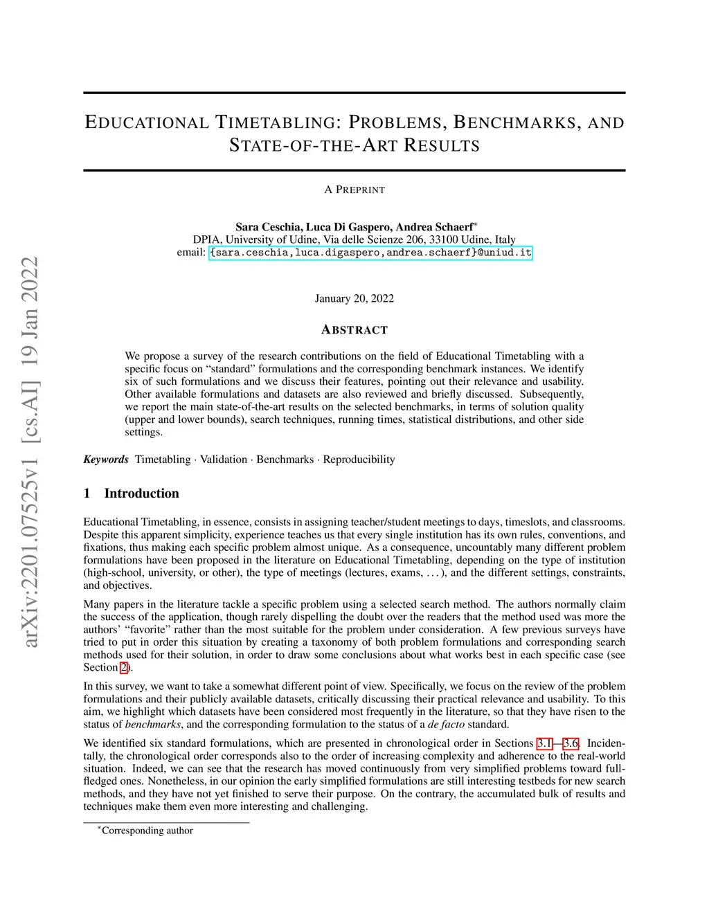 Educational Timetabling: Problems, Benchmarks, and State-of-the-Art
