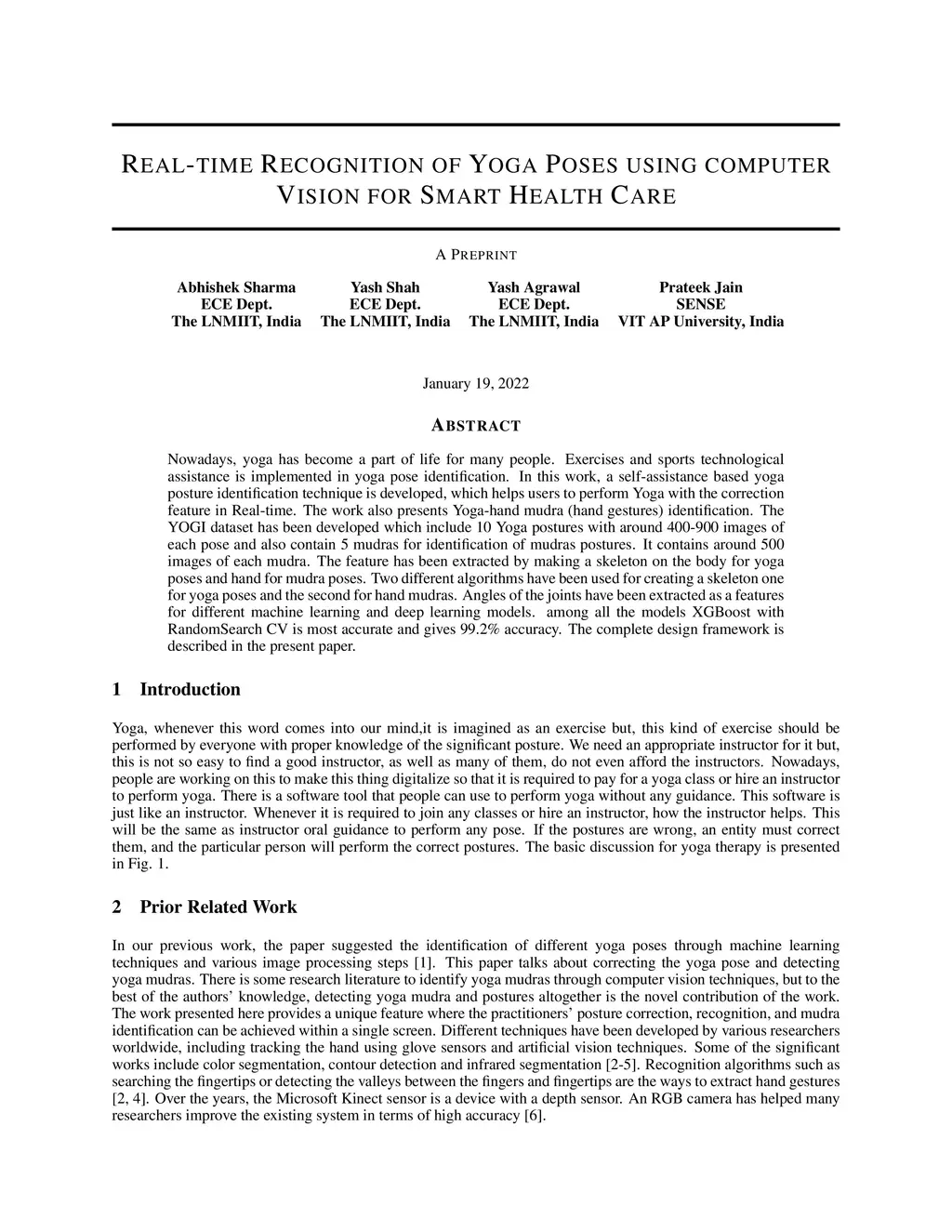 Real-time Recognition of Yoga Poses using computer Vision for Smart