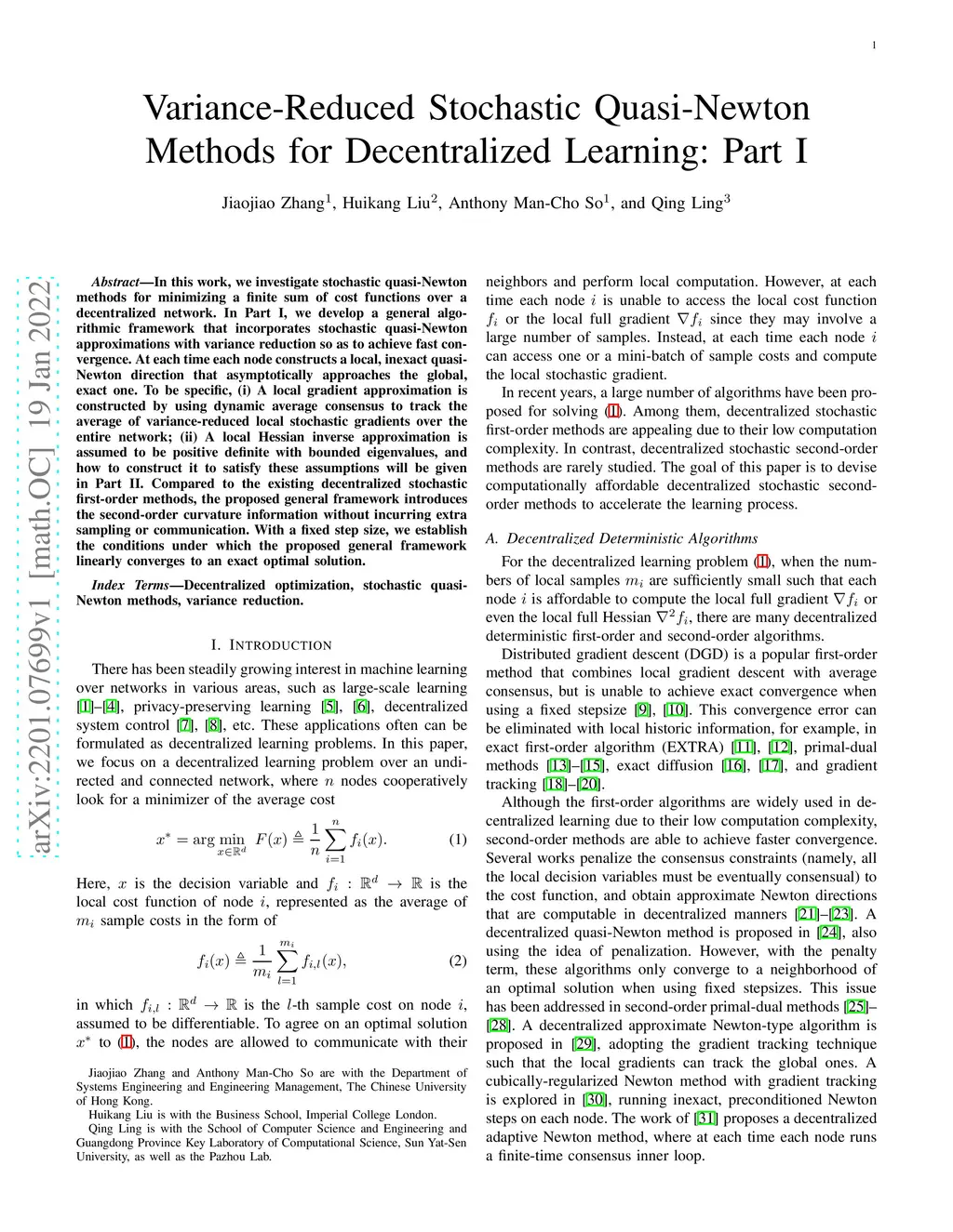 In this work, we investigate stochastic quasi-Newton methods for minimizing a finite sum of cost functions over a decentralized network. In Part I, we develop a general algorithmic framework that incorporates stochastic quasi-Newton approximations with variance reduction so as to achieve fast convergence. At each time each node constructs a local, inexact quasi-Newton direction that asymptotically approaches the global, exact one. To be specific, (i) A local gradient approximation is constructed by using dynamic average consensus to track the average of variance-reduced local stochastic gradients over the entire network; (ii) A local Hessian inverse approximation is assumed to be positive definite with bounded eigenvalues, and how to construct it to satisfy these assumptions will be given in Part II. Compared to the existing decentralized stochastic first-order methods, the proposed general framework introduces the second-order curvature information without incurring extra sampling or communication. With a fixed step size, we establish the conditions under which the proposed general framework linearly converges to an exact optimal solution.