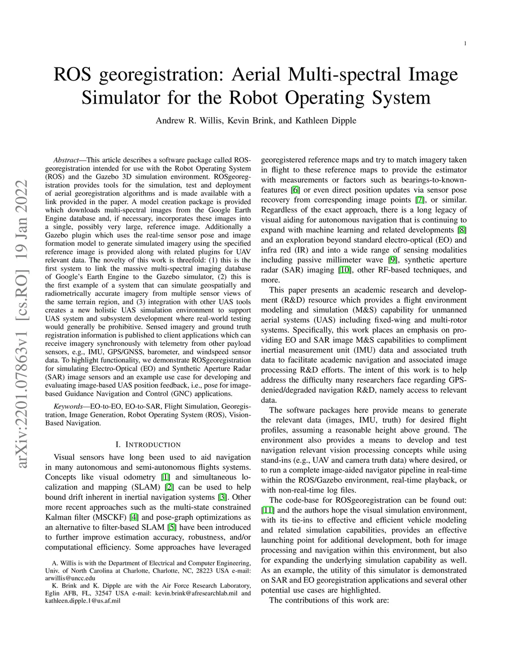 ROS georegistration: Aerial Multi-spectral Image Simulator for the Robot