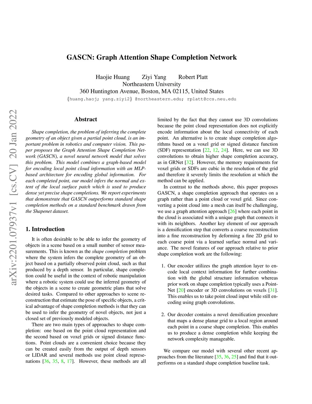 Shape completion, the problem of inferring the complete geometry of an object given a partial point cloud, is an important problem in robotics and computer vision. This paper proposes the Graph Attention Shape Completion Network (GASCN), a novel neural network model that solves this problem. This model combines a graph-based model for encoding local point cloud information with an MLP-based architecture for encoding global information. For each completed point, our model infers the normal and extent of the local surface patch which is used to produce dense yet precise shape completions. We report experiments that demonstrate that GASCN outperforms standard shape completion methods on a standard benchmark drawn from the Shapenet dataset.