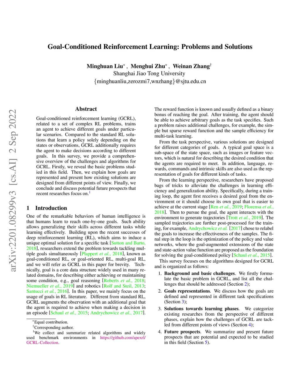 Goal-Conditioned Reinforcement Learning: Problems and Solutions