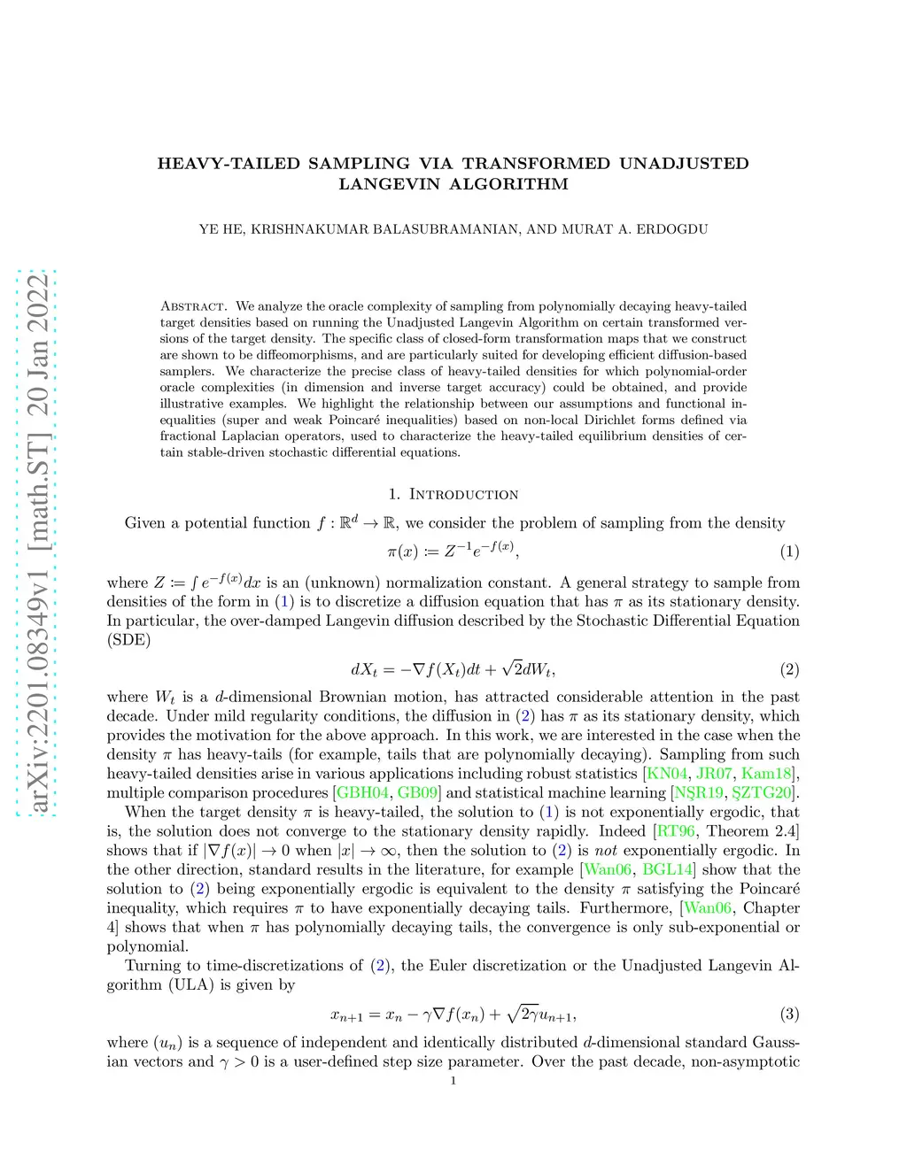 We analyze the oracle complexity of sampling from polynomially decaying heavy-tailed target densities based on running the Unadjusted Langevin Algorithm on certain transformed versions of the target density. The specific class of closed-form transformation maps that we construct are shown to be diffeomorphisms, and are particularly suited for developing efficient diffusion-based samplers. We characterize the precise class of heavy-tailed densities for which polynomial-order oracle complexities (in dimension and inverse target accuracy) could be obtained, and provide illustrative examples. We highlight the relationship between our assumptions and functional inequalities (super and weak Poincar\é inequalities) based on non-local Dirichlet forms defined via fractional Laplacian operators, used to characterize the heavy-tailed equilibrium densities of certain stable-driven stochastic differential equations.