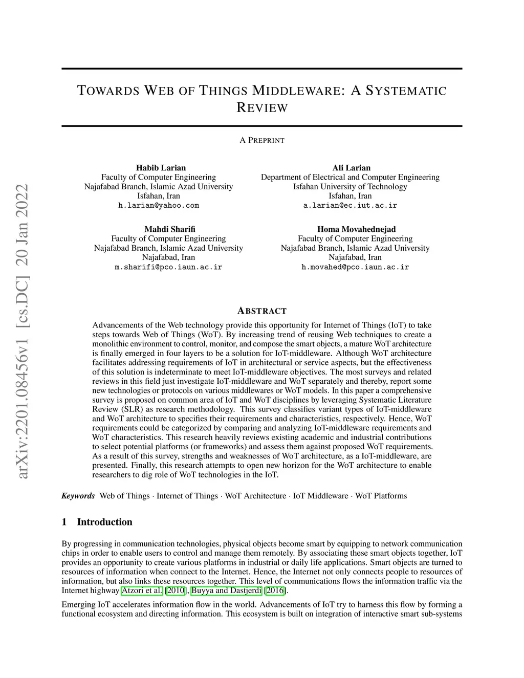Advancements of the Web technology provide this opportunity for Internet of Things (IoT) to take steps towards Web of Things (WoT). By increasing trend of reusing Web techniques to create a monolithic environment to control, monitor, and compose the smart objects, a mature WoT architecture is finally emerged in four layers to be a solution for IoT-middleware. Although WoT architecture facilitates addressing requirements of IoT in architectural or service aspects, but the effectiveness of this solution is indeterminate to meet IoT-middleware objectives. The most surveys and related reviews in this field just investigate IoT-middleware and WoT separately and thereby, report some new technologies or protocols on various middlewares or WoT models. In this paper a comprehensive survey is proposed on common area of IoT and WoT disciplines by leveraging Systematic Literature Review (SLR) as research methodology. This survey classifies variant types of IoT-middleware and WoT architecture to specifies their requirements and characteristics, respectively. Hence, WoT requirements could be categorized by comparing and analyzing IoT-middleware requirements and WoT characteristics. This research heavily reviews existing academic and industrial contributions to select potential platforms (or frameworks) and assess them against proposed WoT requirements. As a result of this survey, strengths and weaknesses of WoT architecture, as a IoT-middleware, are presented. Finally, this research attempts to open new horizon for the WoT architecture to enable researchers to dig role of WoT technologies in the IoT.