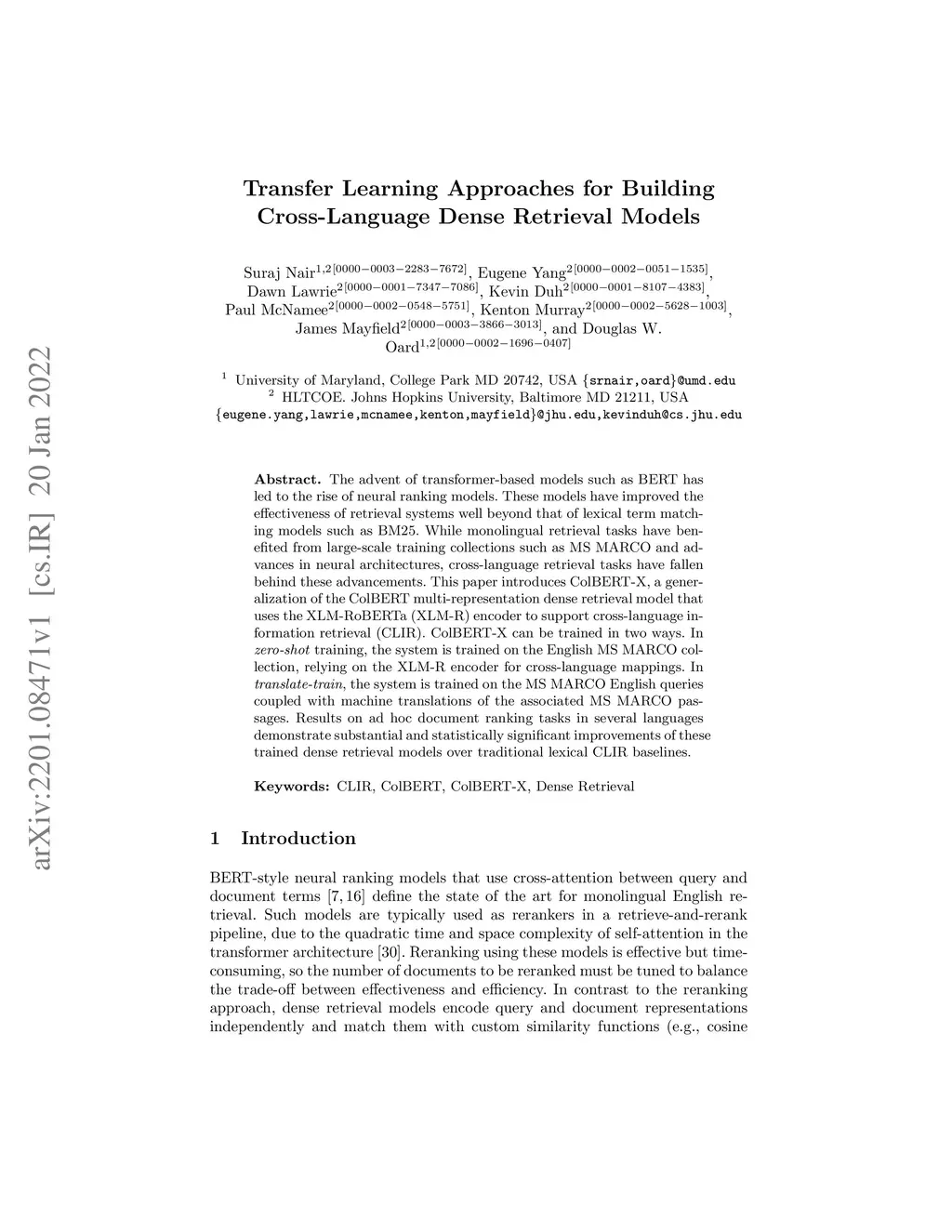 Transfer Learning Approaches for Building Cross-Language Dense Retrieval