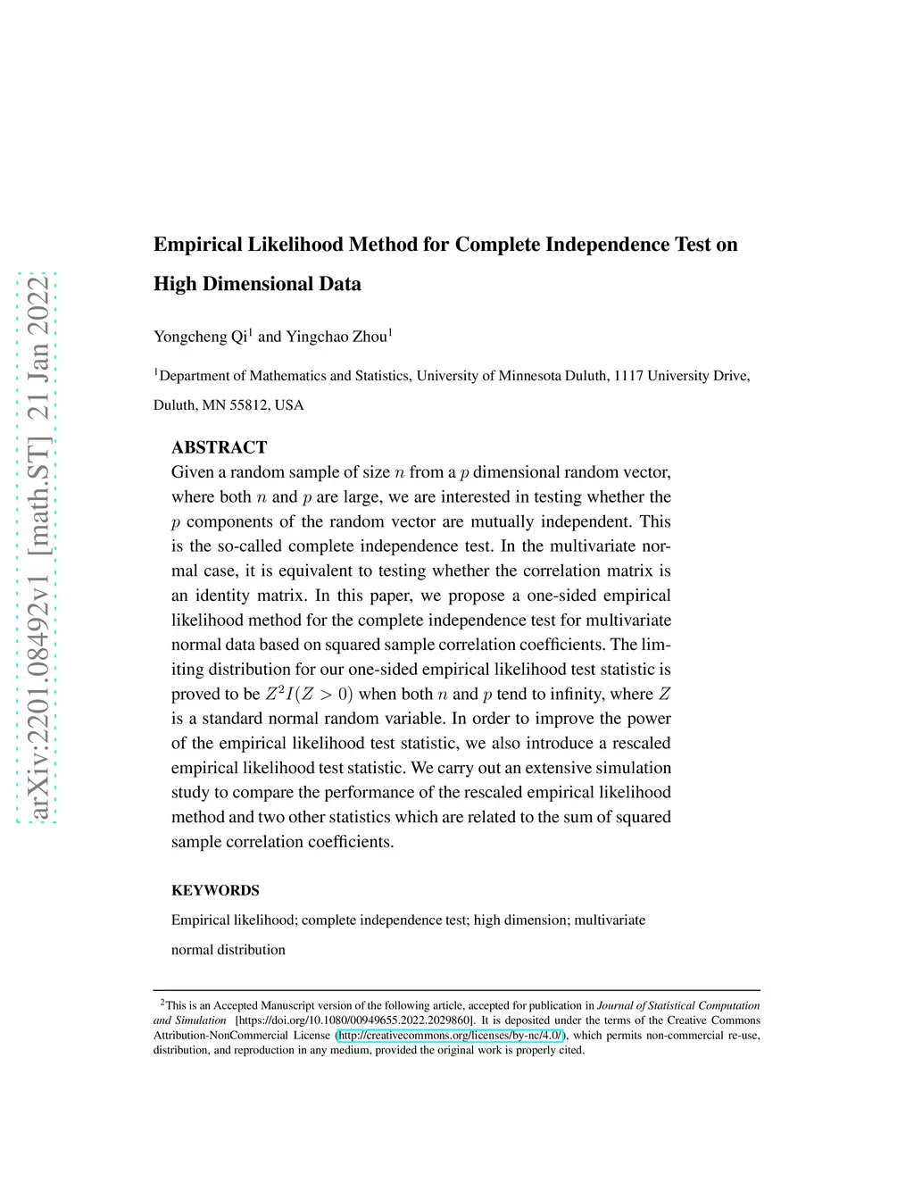 Given a random sample of size from a dimensional random vector, where both and are large, we are interested in testing whether the components of the random vector are mutually independent. This is the so-called complete independence test. In the multivariate normal case, it is equivalent to testing whether the correlation matrix is an identity matrix. In this paper, we propose a one-sided empirical likelihood method for the complete independence test for multivariate normal data based on squared sample correlation coefficients. The limiting distribution for our one-sided empirical likelihood test statistic is proved to be when both and tend to infinity, where is a standard normal random variable. In order to improve the power of the empirical likelihood test statistic, we also introduce a rescaled empirical likelihood test statistic. We carry out an extensive simulation study to compare the performance of the rescaled empirical likelihood method and two other statistics which are related to the sum of squared sample correlation coefficients.