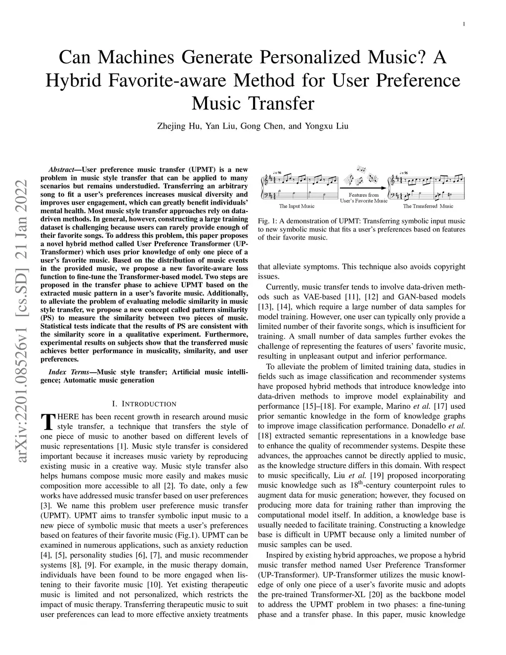 User preference music transfer (UPMT) is a new problem in music style transfer that can be applied to many scenarios but remains understudied.