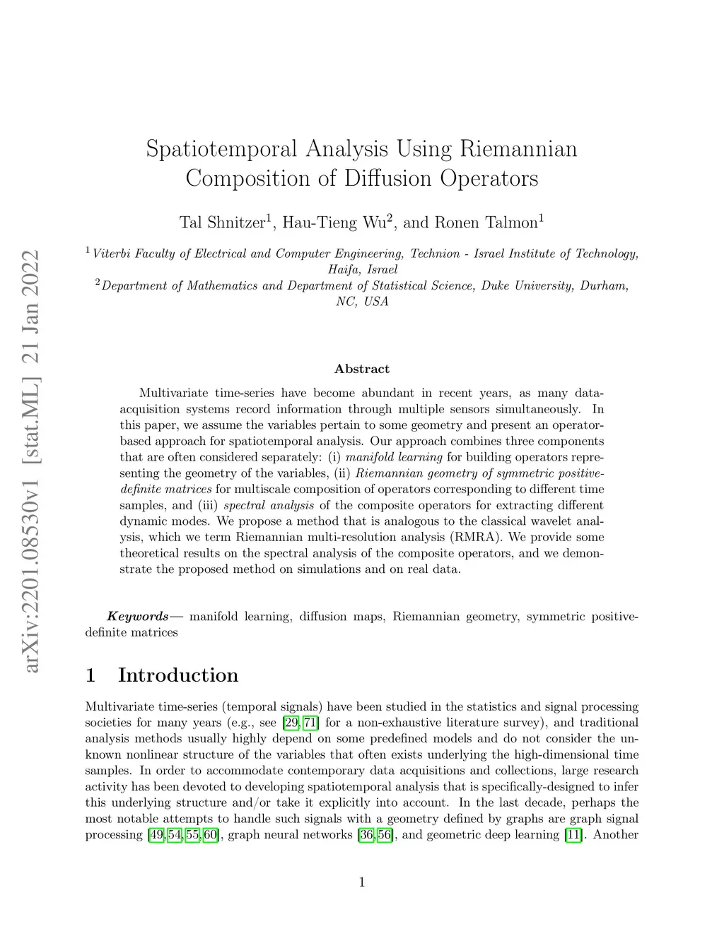 Multivariate time-series have become abundant in recent years, as many data-acquisition systems record information through multiple sensors simultaneously. In this paper, we assume the variables pertain to some geometry and present an operator-based approach for spatiotemporal analysis. Our approach combines three components that are often considered separately: (i) manifold learning for building operators representing the geometry of the variables, (ii) Riemannian geometry of symmetric positive-definite matrices for multiscale composition of operators corresponding to different time samples, and (iii) spectral analysis of the composite operators for extracting different dynamic modes. We propose a method that is analogous to the classical wavelet analysis, which we term Riemannian multi-resolution analysis (RMRA). We provide some theoretical results on the spectral analysis of the composite operators, and we demonstrate the proposed method on simulations and on real data.