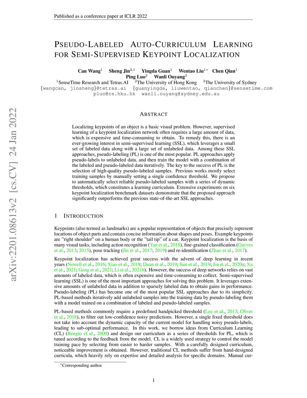 Pseudo-Labeled Auto-Curriculum Learning for Semi-Supervised Keypoint