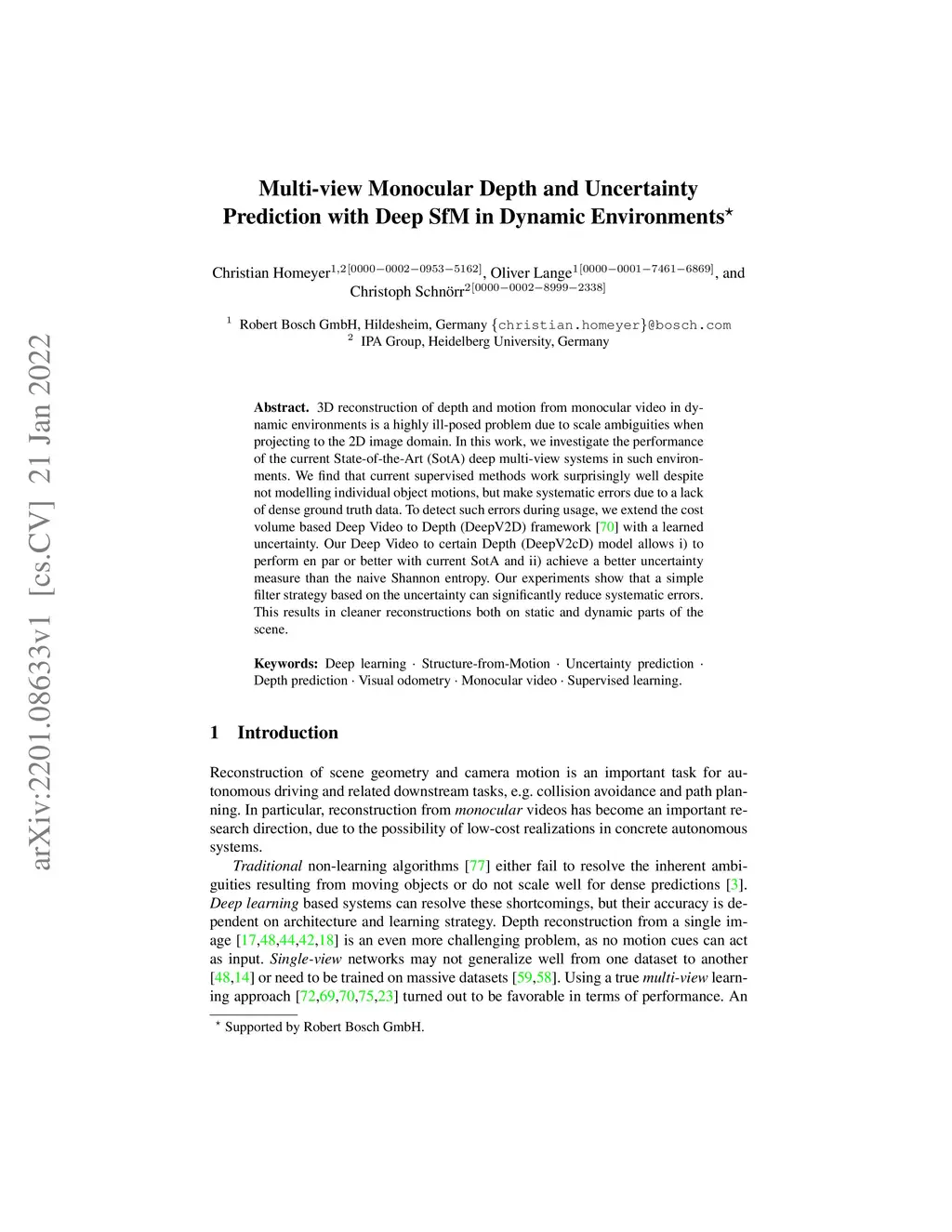 3D reconstruction of depth and motion from monocular video in dynamic environments is a highly ill-posed problem due to scale ambiguities when projecting to the 2D image domain. In this work, we investigate the performance of the current State-of-the-Art (SotA) deep multi-view systems in such environments. We find that current supervised methods work surprisingly well despite not modelling individual object motions, but make systematic errors due to a lack of dense ground truth data. To detect such errors during usage, we extend the cost volume based Deep Video to Depth (DeepV2D) framework \cite{teed2018deepv2d} with a learned uncertainty. Our Deep Video to certain Depth (DeepV2cD) model allows i) to perform en par or better with current SotA and ii) achieve a better uncertainty measure than the naive Shannon entropy. Our experiments show that a simple filter strategy based on the uncertainty can significantly reduce systematic errors. This results in cleaner reconstructions both on static and dynamic parts of the scene.